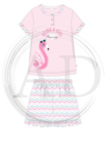 Pigiama m/m serafino con stampa e pantalone fantasia.JERSEY - 100% COTONE
