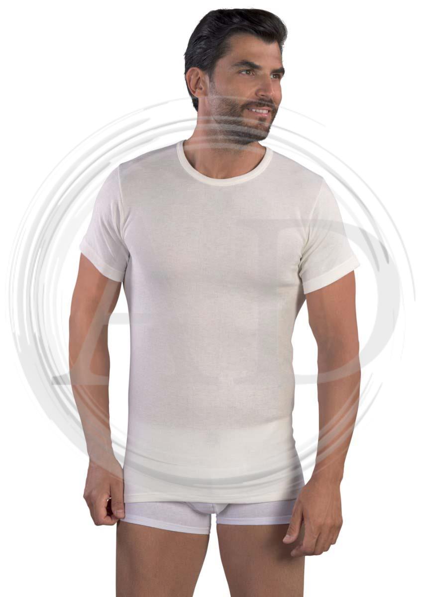Maglia uomo mezza manica girocollo lana e cotone