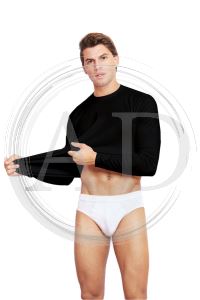 Maglia girocollo manica lunga uomo in cotone bielastico garzato