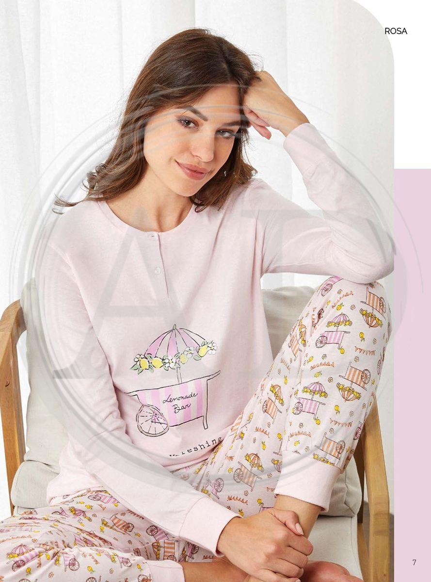 Pigiama da donna realizzato in morbido cotone, pensato per offrire comfort e libertà di movimento durante il riposo.