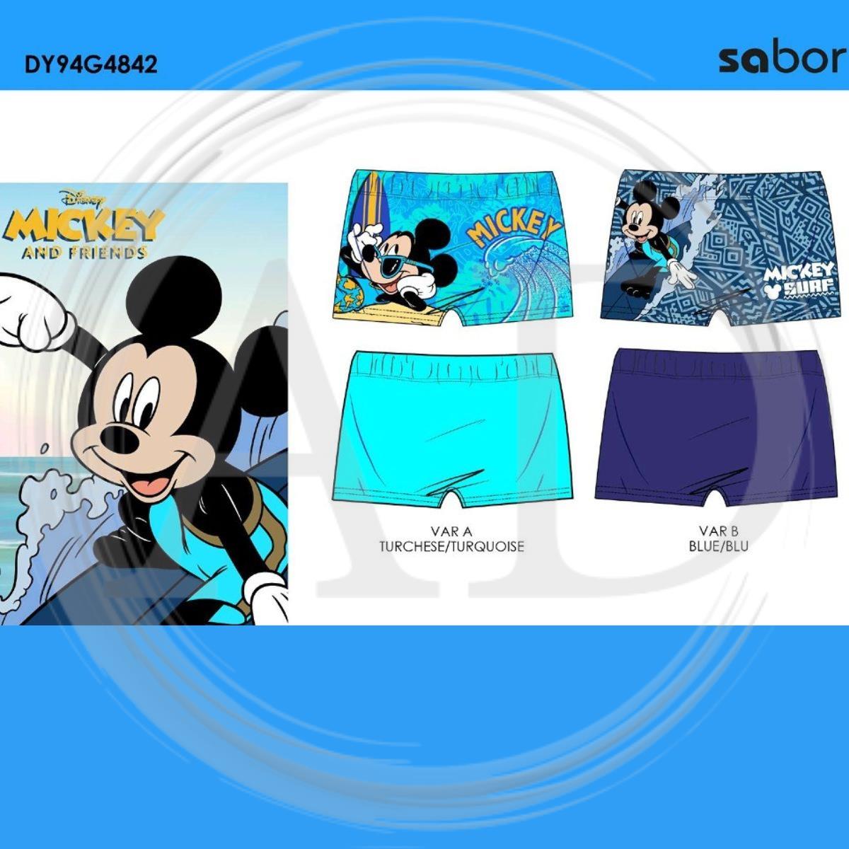 Costume da bagno bambino modello boxer, realizzato in tessuto leggero e confortevole, ideale per mare e piscina. Decorato con vivace fantasia Mickey Mouse, l’iconico personaggio amato dai più piccoli. La vestibilità comoda assicura libertà di movimento e comfort durante il gioco e il nuoto. Un costume pratico e divertente, perfetto per l’estate.